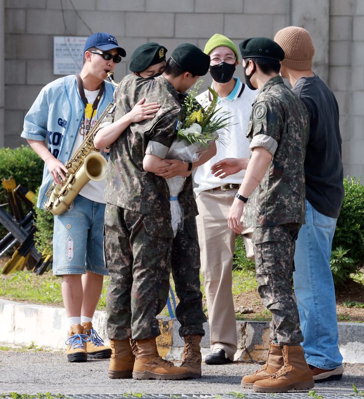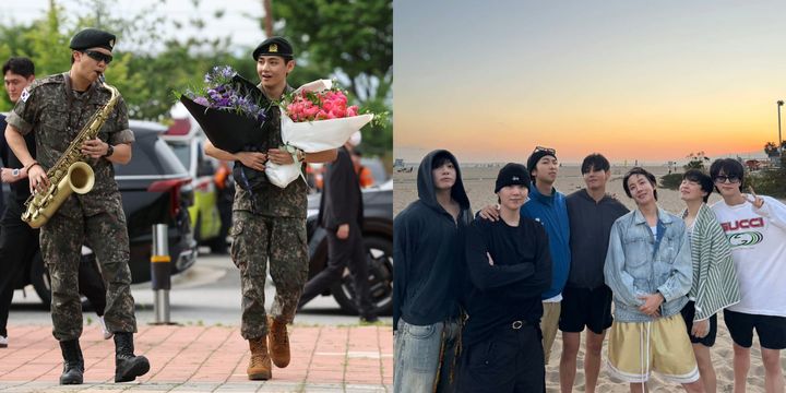 6月10日、RMとVが兵役義務を完了。RMはサックスでアニメ「名探偵コナン」のメインテーマを披露して注目を集めた。2人はステージに早く戻りたいと話し、再始動への意欲を表明。