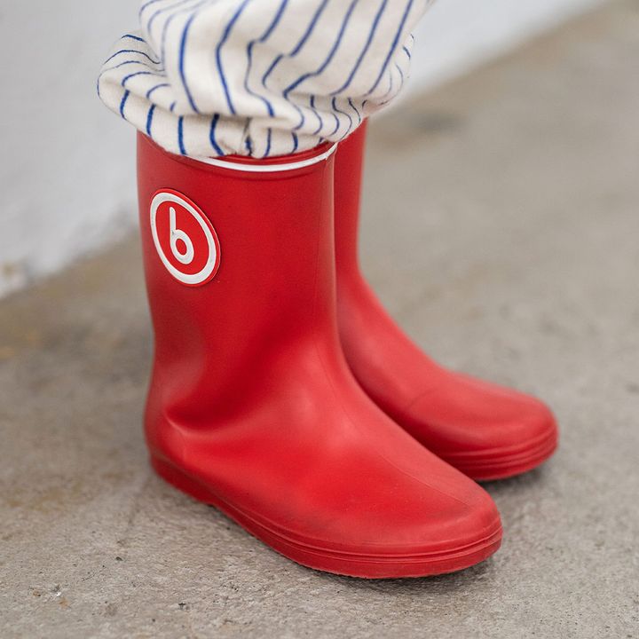 名品である『こどもビームス』のレインブーツは、レッドをチョイス。帽子のワンポイントからカラーをシェアして、まとまりのあるカラースタイリングに昇華!