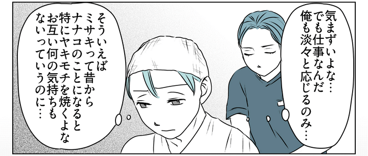 病室で妻のことを考えていると、元カノのナナコが担当看護師として入ってきました。