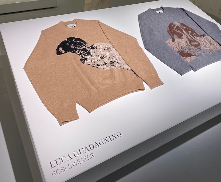 映画監督ルカ・グァダニーノが捉えた愛犬の写真を、ジャカードでセーターのデザインに。 Hearst Owned
