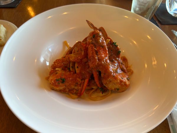 こちらは渡り蟹のトマトソース。タリアテッレが隠れてしまうほど贅沢に乗った渡り蟹。美しい色合いのソースは、トマトの甘みと蟹の濃厚な味わいが詰まっています。
