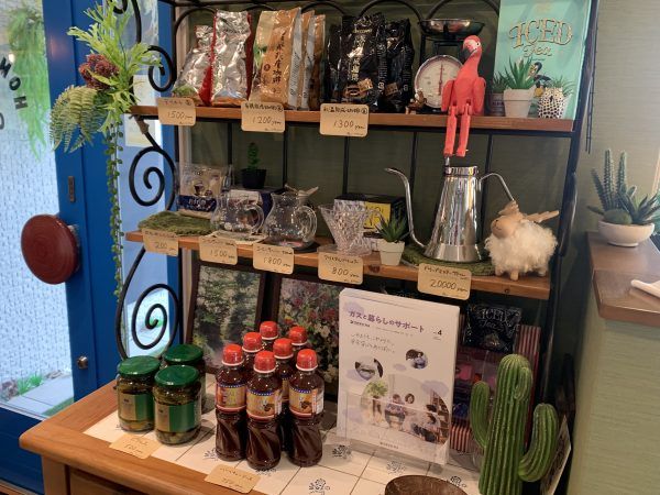 レジ横にはコーヒー豆やコーヒー器具、ピクルスの瓶詰め、バーベキューソースなど、購入できる品々が並んでいました。