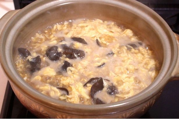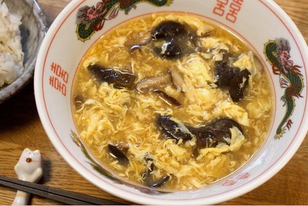 長ねぎ、トマト、玉ねぎなど、うまみの強い野菜から「一番だし」を取るレシピが豊富に紹介されている本書。その中から、きのこを使った「きくらげと干ししいたけの酸辣湯」を作りました。
