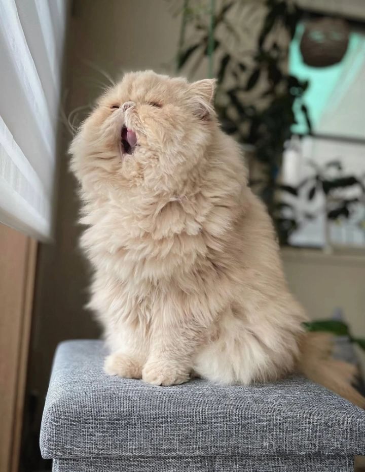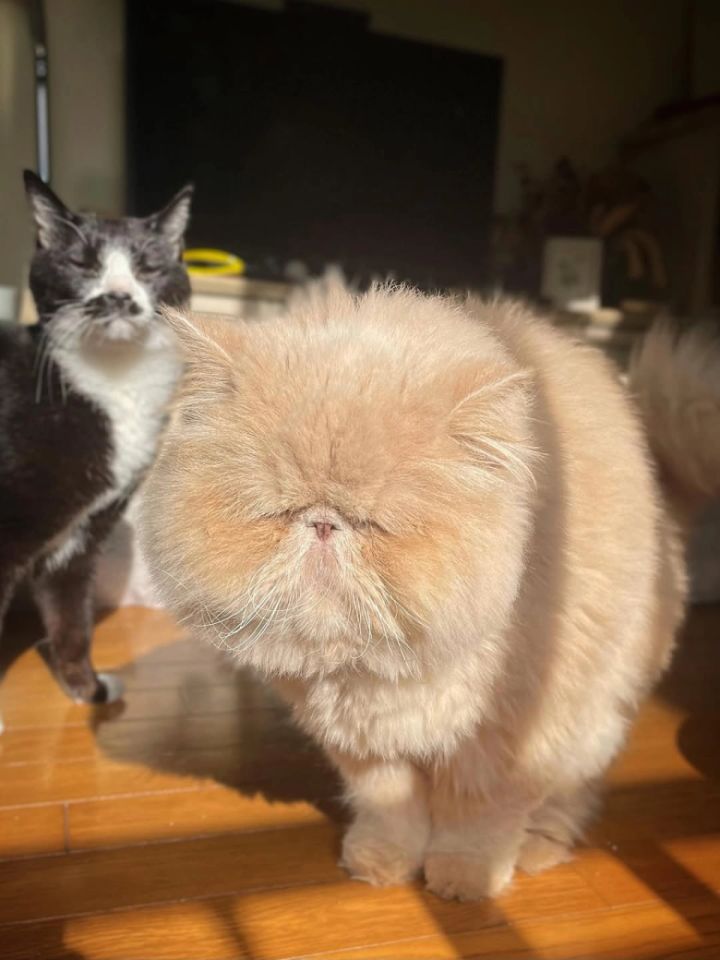 かわいいお顔がうもれちゃう!?くらいモフモフ最強のエキゾチックロングヘアの猫ちゃんを発見!名前は『おぶ』ちゃん♡渋いのにかわいいがぎゅーっと詰まった表情にノックアウトです♡このとてつもない、愛おしさ満載のお姿を大公開します!