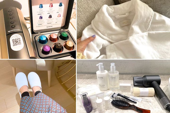 ふかふかのボリューム感あるバスローブとスリッパに包まれて、上質なコスメでメンテナンスし、こだわりのコーヒーに酔う。自分自身を丁寧に扱うことを思い出させてくれるような、至福のひとときでした。