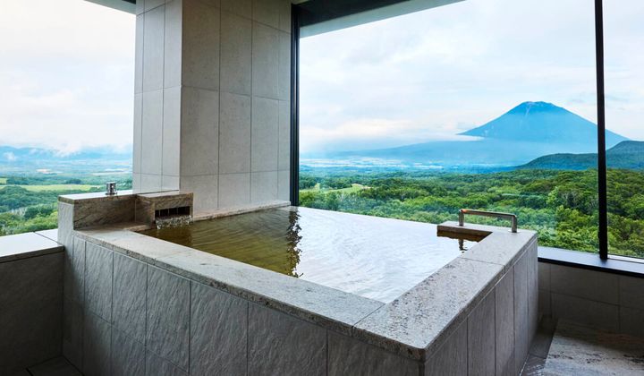 さらに筆者が宿泊した「Corner Onsen Suite」は88㎡あり、リビングエリアとベッドルームが分かれていて、どの角度からも雄大な山々や自然が望めます。部屋のコーナーには大きな石造りの温泉浴槽があり、大浴場とは違う気軽さで、好きな音楽を聴きながらの深夜のバスタイムも忘れられない思い出です。