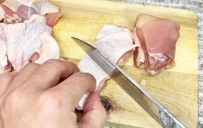 まず、鶏もも肉2枚を5cm角程度の一口大にカットします。