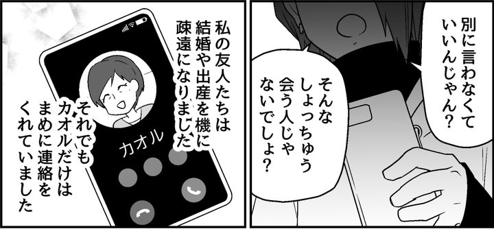 カオルは大学を卒業した後、わりとすぐに結婚して子育てがはじまりました。連絡はよく取り合っていたものの、最近までなかなか会う機会はありませんでした。私がケントと付き合ったり別れたりしていたことはまったく知りません。