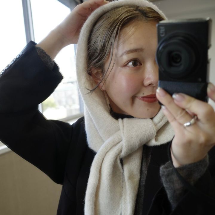 自転車で毎日走りまくっているので、防寒に必須なストールは『hholic』のもの。柔らかな心地良さでマフラーにしたり肩掛けにも○ 服も可愛いのでいつもチェックしているブランドさんです。