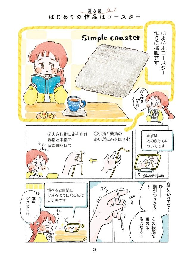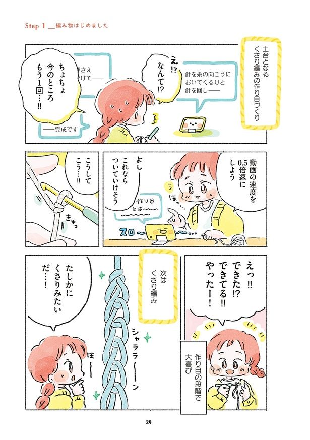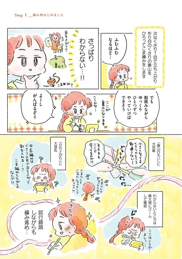 3. 動画を頼りに編み物に初挑戦。速度0.5倍でゆっくり進めたら、なんとか最初の作品が完成!/あめばあむほど好きになる