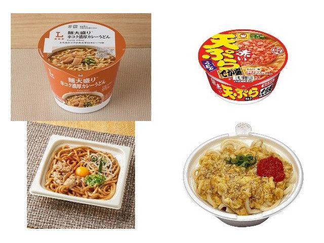 3. 今週新発売のうどんまとめ!『麺大盛り 辛コク濃厚カレーうどん』、『赤い天ぷら三昧うどんでか盛』など♪