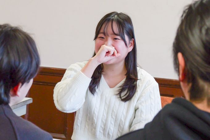 鉢野:私も入学する前は真面目でおとなしい人が多いかなと思っていたんですけど、積極的に自分の関心事に向かって頑張る自立している人が多いと思いましたね。