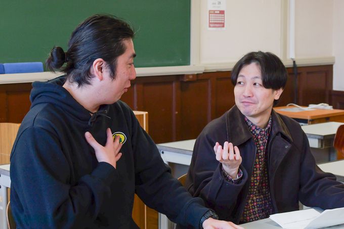 寺内:確かに! さっきも、僕ら学食で、めちゃくちゃ冷めた目で見られたよ。まあ、いきなりおじさん4人が談笑しながら歩いているのを見たら、そりゃ仕方ないか(笑)。