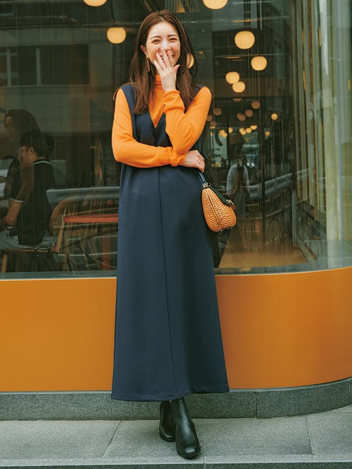 ③体のラインを拾わずスタイルアップできる「ジャンパースカート」
