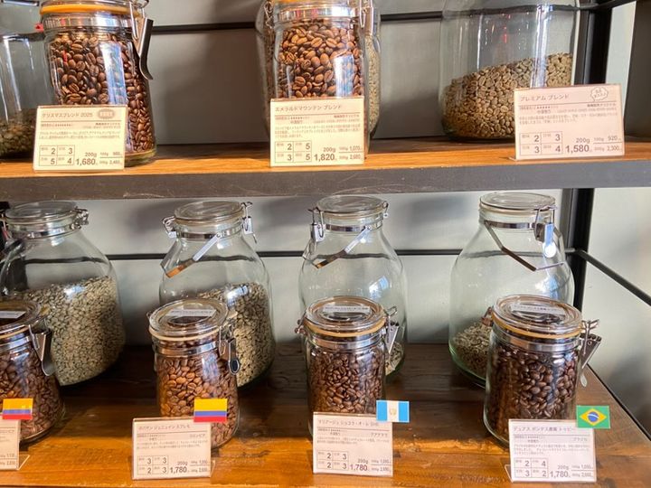 私は、自家焙煎珈琲豆が気になったので珈琲豆を購入してみました。珈琲豆の前側にポップが置いてあり、とても丁寧にどんな珈琲豆なのか書いてあるのでポップを見ながら選んだり、店主様に好みの珈琲の味を伝えて選んだりすることもできます。