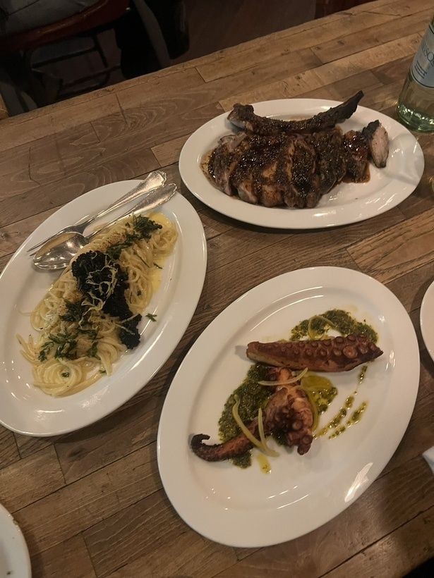 洒落た店内に案内される。黒いTシャツを着たシェフがご機嫌に釜の前に立っていて、小躍りしながら料理をしていた。可愛らしいドイツのビールを飲む。タコのグリルがめちゃくちゃ美味しかった。今回はマネージャーさんも一緒にいたので、レストランに心置きなく入れること、色々頼めるところが嬉しいと思った。