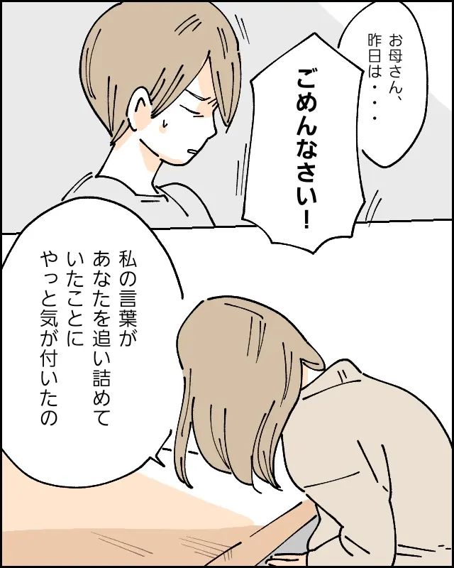 自分の言葉が息子を追い詰めていたと気づいた母は息子に謝罪