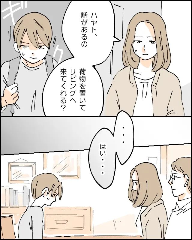 学校から帰ったハヤトと向かい合って座り、きちんと話をしようと思いました。そばには夫にもいてもらいました。私に座るように声をかけられたハヤトは、ギクッとしたようでしたが、素直に従いました。