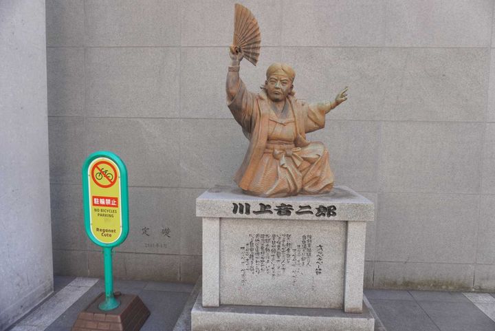 「オッペケペー節」で有名な博多出身・川上音二郎の像も