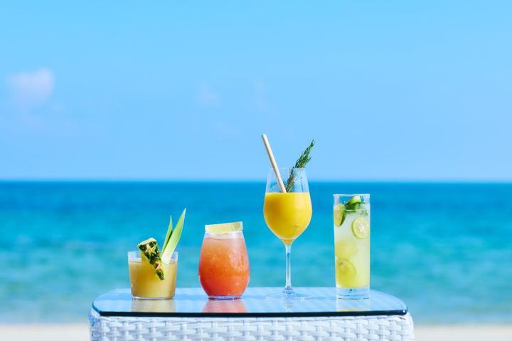 サウナ体験の最後は、旬の南国フルーツを生かしたサウナドリンクを味わえます。春はパイナップル、夏はマンゴー、秋はグァバ、冬はシークヮーサーと、季節の味わいをたっぷり詰め込んだノンアルコールカクテルで、失われたミネラルをさわやかに補給することができます。見た目も鮮やかで、海辺に映えるドリンクで“ととのい”が完了!
