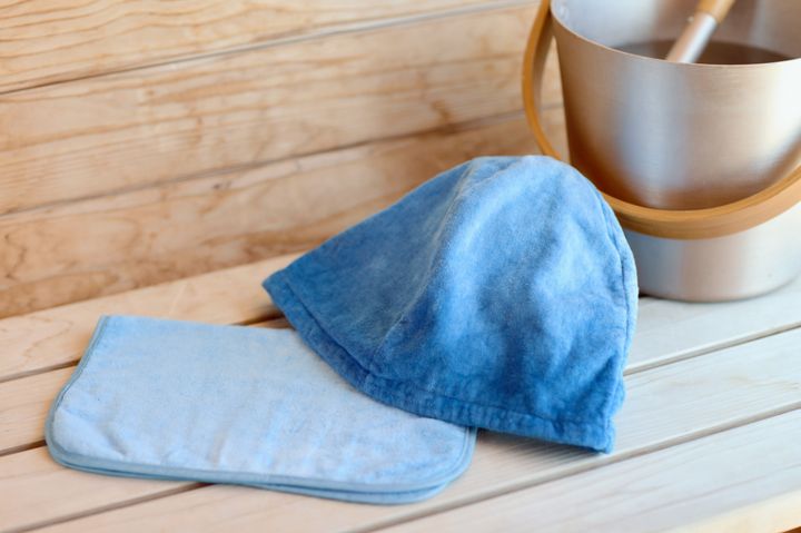 小浜島の伝統工芸「藍染め」で仕上げたサウナハットとサウナマットが用意されているので、持ち物が少なくて済むのもポイントです。