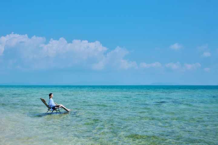 冷水浴を終えたら、海上に浮かぶ外気浴チェアへ移動。海風や波の音に包まれながら、のんびりとした時間を過ごせますよ。