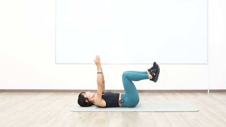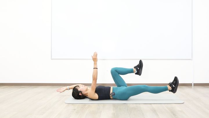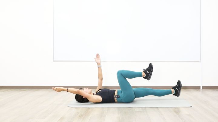 寝たままの状態で、腹筋と体幹にしっかり効く「デッドバグ」。寝たまま行うため、腰画の負担が軽くなっています。