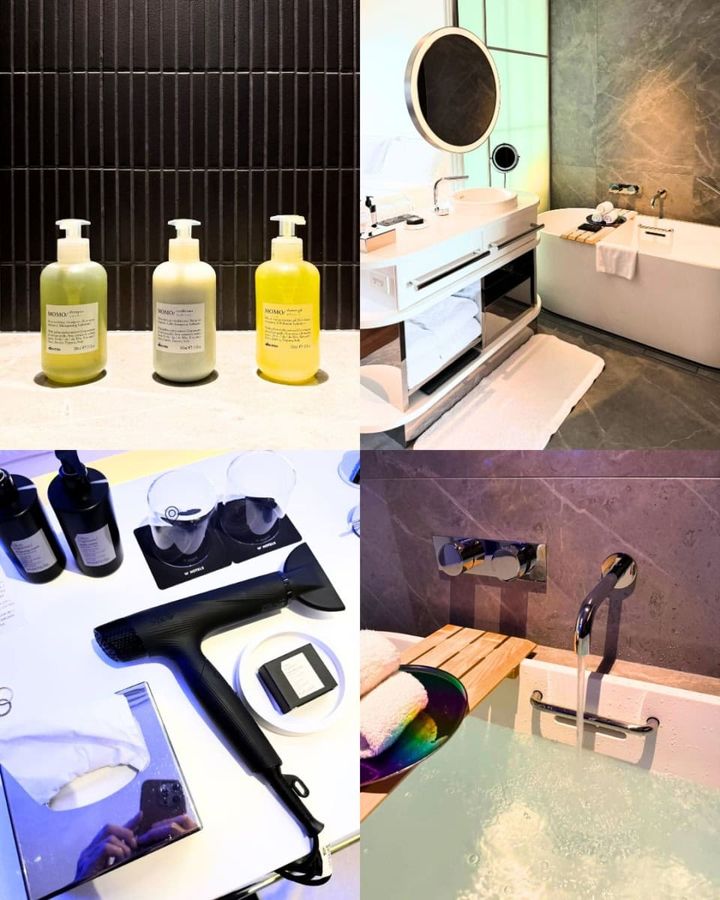 気になるアメニティはヘアケアはダヴィネス、スキンケアはコンフォートゾーン。ドライヤーはReFa。これって何気に嬉しいポイントです。大きなバスタブも心地いい!