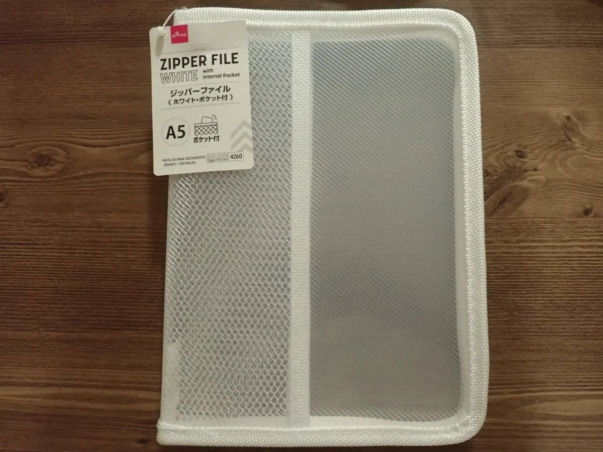 【ダイソー】おすすめ収納グッズ③A5ジッパーファイル(ホワイト、ポケット付)