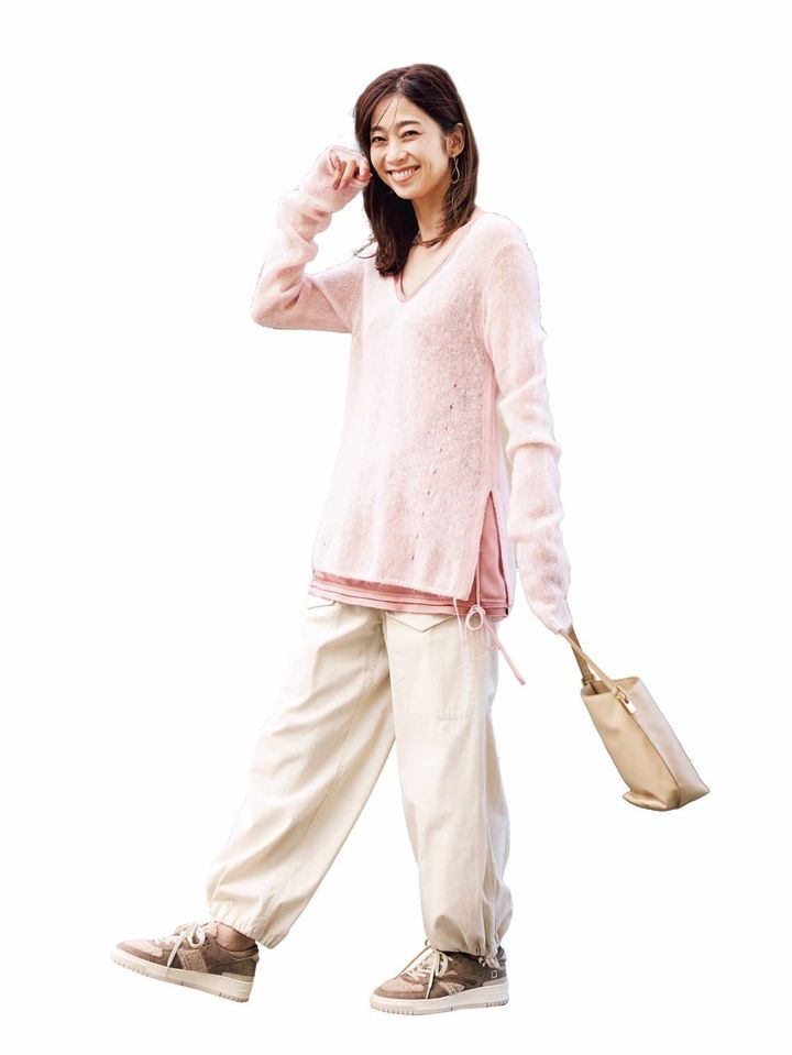 ニット¥19,800キャミソール¥25,300(ともにstyling/)パンツ¥26,400(ティッカ)バッグ¥37,{hlb}400(オルセット/オルサ)スニーカー¥35,200(デイト/ティースクエア プレスルーム)イヤリング¥46,200(ブランイリス/ブランイリス トーキョー)チョーカー¥7,480(ピルグリム/ズットホリック)
