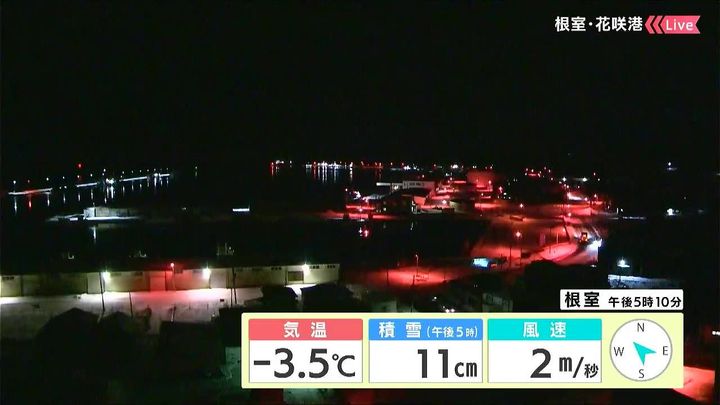 背景23日午後5時ごろの根室花咲情報カメラ