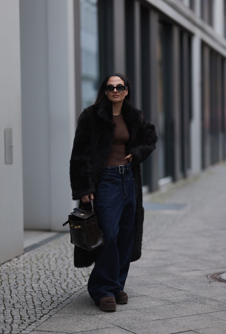 何よりも心地よさを優先したいなら、「アグ」に勝るシューズはなかなかない。同じくらい暖かなフェイクファーコートと合わせれば、凍えるような寒い日にもぴったりの装いに。仕上げにヘッドバンドとサングラスをプラスして、冬のリゾートシックなムードを楽しんで。