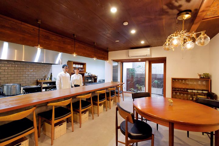 二条城近くに2021年開業した「リアン」は、尾原隆広さんとパティシエの順子さん夫妻が営むフレンチ。築80年の昭和モダンな民家を改装した店舗には、焼き菓子店も併設されています。