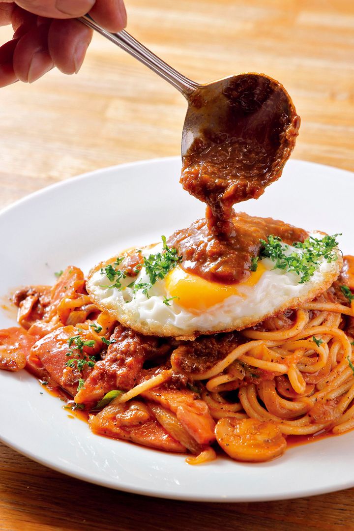 小山さんが「ぜひとも味わってほしい」というのが、「カレーナポリタン薫堂風」。「ナポリタンもカレーも両方食べたい!」という小山さんの声に、ひと皿で2度おいしい特別な一品が生まれました。