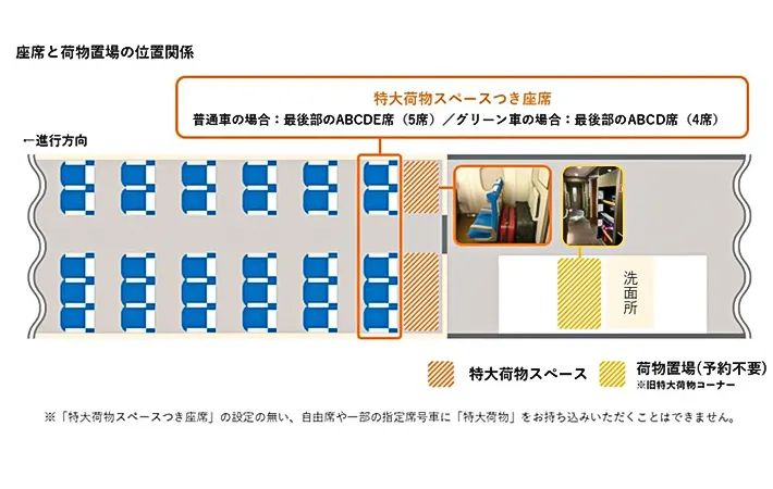 特大荷物を車内に持ち込む場合は、原則として特大荷物スペースつき座席を事前に予約する必要があります。