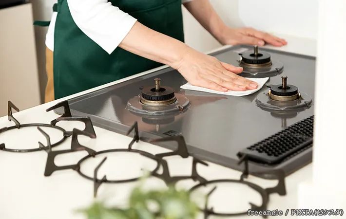 調理の際は、袖口や裾にガスコンロの火が燃え移ってしまうケースが多いため、袖が垂れ下がる服や、裾が広いデザインの服はできるだけ避けるようにしましょう。