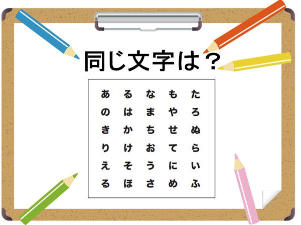 脳を活性化するためには、日頃の習慣が大切です。今回挑戦していただく問題は「同じ文字探し」です。制限時間を意識しながら問題を解くことで、集中力や注意力を鍛えましょう!