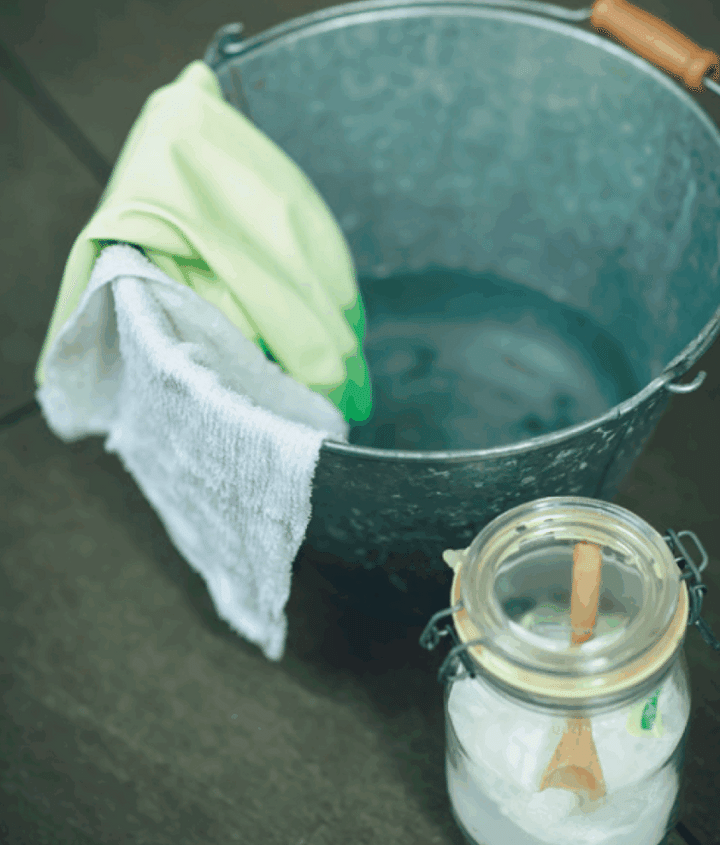 重曹を溶かした湯に漬けて固く絞った雑巾を使用。