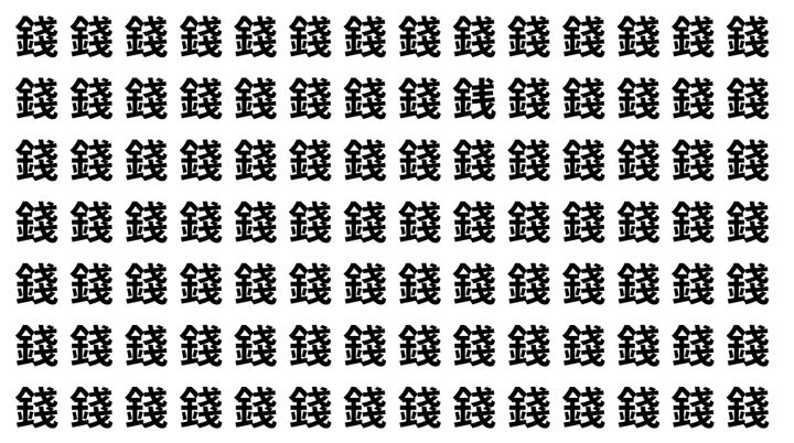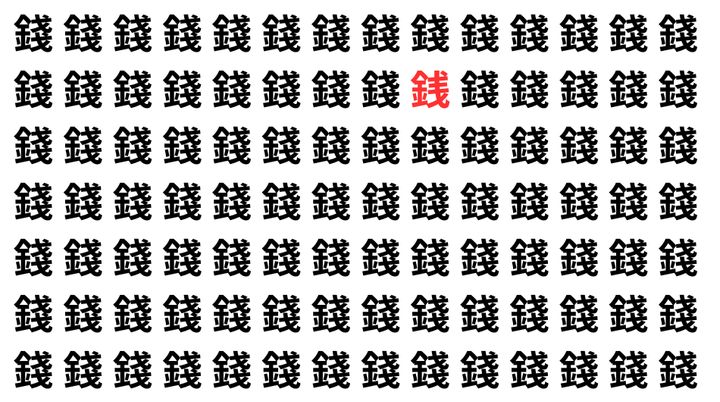 たくさんの「錢」の中に、よく似た別の漢字が1文字だけ隠れています。