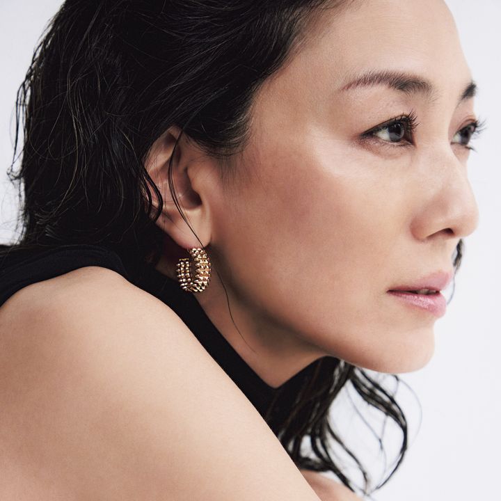 《写真1枚目》シャツ¥97,900〈参考商品〉デニム¥90,200(ともにスポーツマックス/マックスマーラ ジャパン)フープイヤリング〈PG〉¥1,452,000 リング〈左手・PG〉¥594,000〈右手・YG〉¥726,000 ネックレス〈PG〉¥6,600,000(すべてカルティエ/カルティエ カスタマー サービスセンター)《写真2・3枚目》ニット¥272,800パンツ¥214,500ブーツ¥297,000ピアス¥159,500(すべてジルサンダー/ジルサンダージャパン)《写真4・5枚目》ドレス¥220,000(ニナ リッチ/イザ)イヤリング〈PG〉¥1,333,200バングル〈手首側から・ともにPG〉¥1,742,400¥1,359,600(すべてカルティエ/カルティエ カスタマー サービスセンター)《写真6枚目》ジレ¥238,700(スポーツマックス/マックスマーラ ジャパン)イヤリング〈上・WG〉¥566,500〈下・WG〉¥715,000(ともにカルティエ/カルティエ カスタマー サービスセンター)