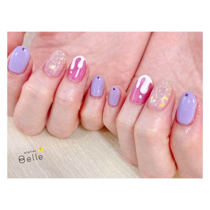 3. 【冬のパステルネイル】パープル×ピンクにとろ~りクリームアートが可愛い!