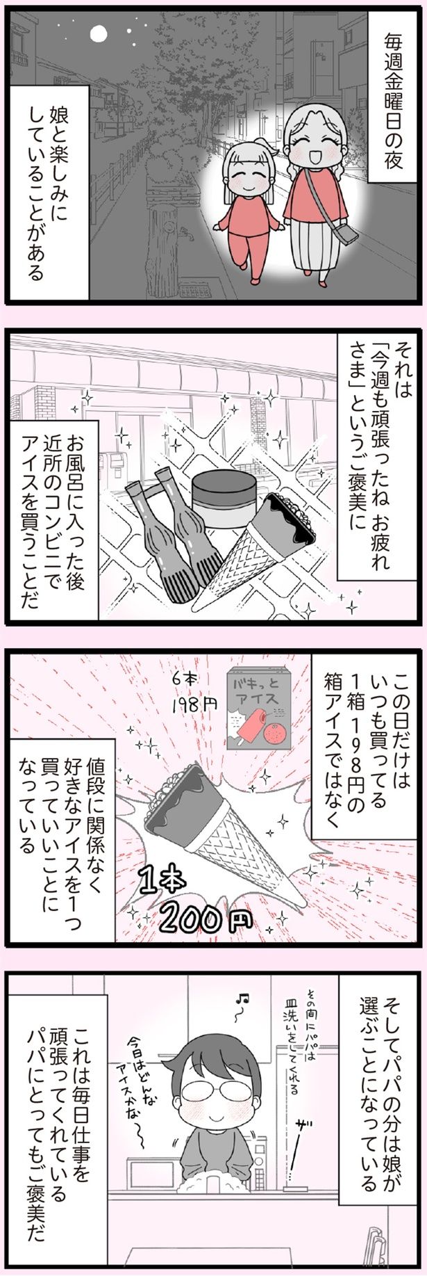 チヨちゃんのパパは、料理も手際よくこなし、娘とも仲がよい理想的な父親だ。エェコさんは彼について、「とにかく穏やかで優しく、休日は必ず子どもと遊ぶ子煩悩な人。奥さんも大事にしていて、家庭を第一に考えて行動できる」と評する。そんなチヨちゃん一家の団らんを目の当たりにしたキミちゃんは、物語の終盤、泣きそうな顔で笑顔を作りながらこう呟く。「私のパパとママも、こんなパパとママだったらよかったのに…」子どもが自分の親を否定し、他人の親を羨む。その言葉の重さは計り知れない。