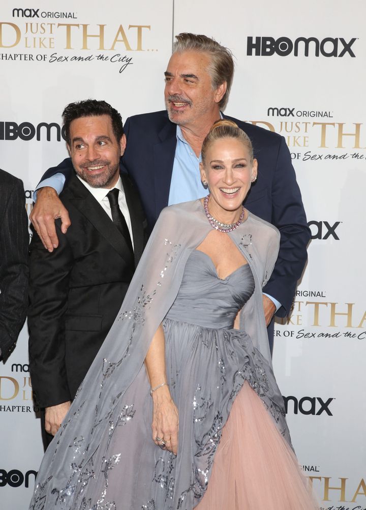 「AND JUST LIKE THAT... / セックス・アンド・ザ・シティ新章」のプレミアで。マリオ・カントーネ(Mario Cantone)、クリス・ノース(Chris Noth)、サラ・ジェシカ・パーカー(Sarah Jessica Parker) Udo Salters / Getty Images