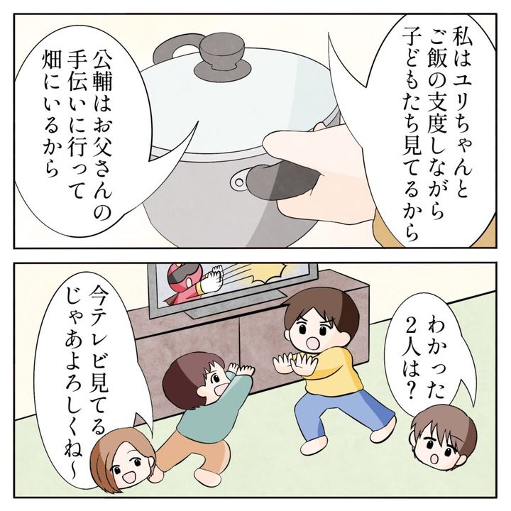 そして、「私はユリちゃんとご飯の支度しながら子どもたち見てるから、公輔は、お父さんの手伝いに行って。畑にいるから」母さんにそう言われ、「わかった。2人は?」と姉ちゃんに聞くと、「今テレビ見てる。じゃあよろしくね~」そう言って、姉ちゃんはパートに行きました。