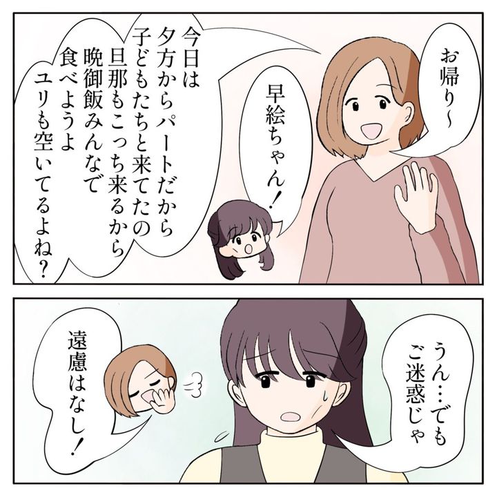 すると、「お帰り~」と現れたのは姉ちゃん。「早絵ちゃん!」と驚くユリ姉に、「今日は夕方からパートだから、子どもたちと来てたの。旦那もこっち来るから、晩御飯みんなで食べようよ。ユリも空いてるよね?」姉ちゃんにそう言われ、「うん・・でもご迷惑じゃ」と動揺するユリ姉に、「遠慮はなし!」と姉ちゃんが一言。