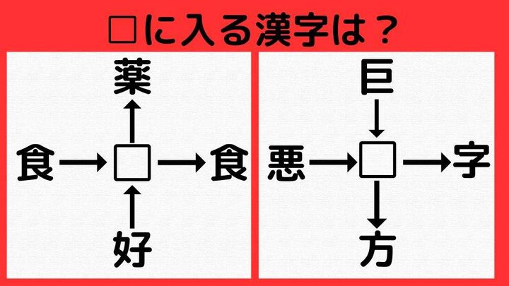 【漢字パズル】語彙力がみるみる上がる!!□薬、□食、好□、食□!?