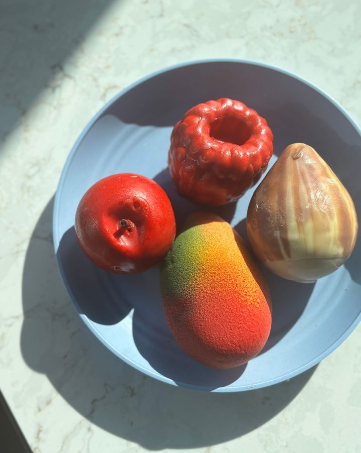 ここの一番人気はトロンプイユ(錯覚)を使ったスイーツ。(中央下)特にマンゴー型のペストリーが人気で1日に200個以上売れることもあるのだとか。1個2000円以上とスイーツとしてはかなり高級ですが、ゴロゴロとしたパッションフルーツとガナッシュがたっぷり入っていて、美味! 見た目で驚き、味で納得する。二重のサプライズが楽しめると思えば、その価値はあるかと。