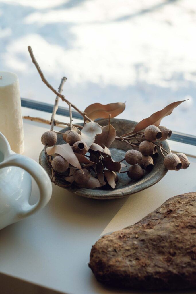 天然のドライボタニカルをディスプレイに、海で拾った綺麗な石は箸置きに。北海道での暮らしは「美しいものはいつも自然の中にある」と教えてくれる。