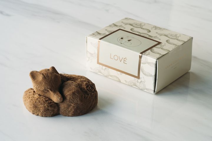 上品なデザインのパッケージを開けると、巣穴からキツネが顔を出すような遊び心あふれる仕様で、視覚から楽しめるギフト。一流の料理人が仕立てるような緻密なショコラと評される、人工的な保存料や香料は一切使わず素材を最大限に生かしたエレガントな味わいが魅力です。ブランドのアイコンであるキツネが愛らしく眠る姿にもほっこり。