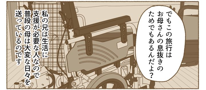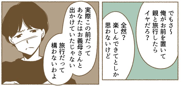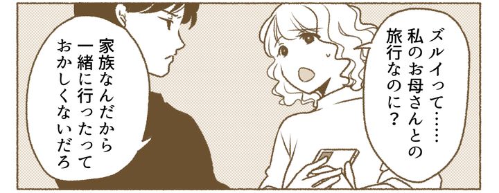 私たちの旅行は、普段の生活が大変な母の息抜きのためでもあります。それなのに夫は「家族なんだから一緒に行ったっていいだろう」と主張します。